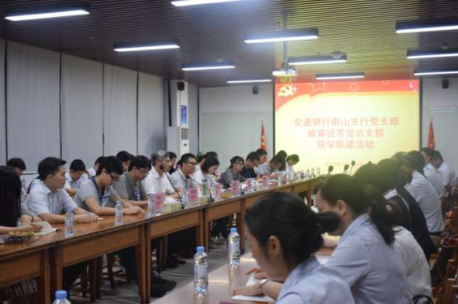 2018年7月18日晚,交通银行南山支行党支部与深圳市星空体育在线网站-星空(中国)有限公司党总支部在星空体育在线网站-星空(中国)集团总部开展了联学联建活动。交通银行南山支行党支部书记张伟胜、副书记高静、纪检委员沈向东、宣传委员郭孟瑶、青年委员杜哲、女工委员彭澎、深圳市星空体育在线网站-星空(中国)有限公司党总支部书记张少林、纪检委员兼深圳市星空体育在线网站-星空(中国)有限公司党支部书记梁先扬、组织委员兼深圳市星空体育在线网站-星空(中国)智能设备有限公司党支部书记关航健、生活委员兼星空体育在线网站-星空(中国)党支部书记肖波、党办主任杨燕丽、星空体育在线网站-星空(中国)党支部组织委员乔亚飞及各支部党员60余人参加了活动,活动由星空体育在线网站-星空(中国)党总支部书记张少林主持。